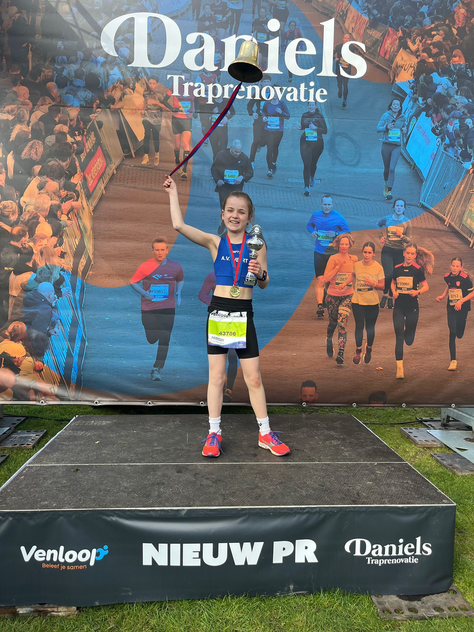 Floor heeft, net als vorig jaar, de kidsrun 1 km tijdens de Venloop in haar categorie (M9-M10) gewonnen in een tijd van 3.23