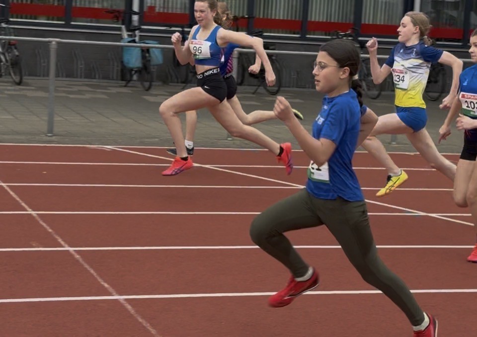 Sprint- talent Yasmine Rahimbaks deed mee op haar favoriete onderdeel (sprint). Zij was met voorrang eerste in haar serie en behaalde hierbij een mega snelle tijd van 9,1 seconden op 60 meter (521 punten). Van haar gaan we nog veel horen! Bij de mannen liep Thomas Huijskens een zeer nette tijd van 12,95 sec op 80m. Goed bezig Thomas!
