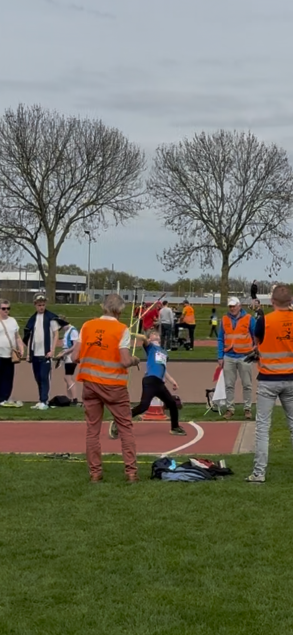 Milan Bovendeerdt en Fay Sentjes debuteerden op speer. Zij beiden lieten een mooie techniek zien. Fay wierp een hele nette afstand van 14,10 meter en werd zelfs achtste in het klassement! Milan wierp 13,77 meter, wat voor eerste jaars een goede afstand is!