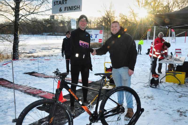 Op de eerste zondag van ieder jaar wordt onder de deelnemers die minimaal acht keer hebben meegedaan een fiets verloot.  Voor 2025 is deze fiets beschikbaar gesteld door Ogier Tweewielers uit Weert. Een jeugdige loper assisteerde Wim Janssen bij het trekken van het winnende lot.