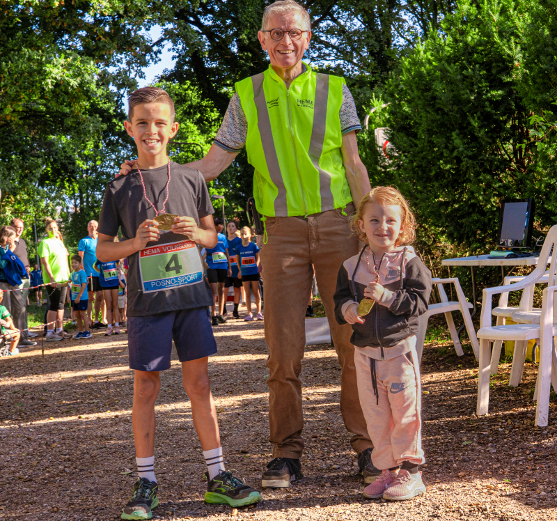 Nog voor de eerste jeugdige lopers mochten vertrekken, werden er jubilarissen in het zonnetje gezet. Een bijzonder moment! De jonge Ella Strijbos, amper vier jaar oud, had al tien keer meegelopen. Haar enthousiasme straalde van haar af, en je zag iedereen denken: dát is nog eens vroeg beginnen. Niet veel later mocht ook Jonah Lussenberg, negen jaar oud en net zo fanatiek, zijn applaus in ontvangst nemen. Bij de senioren was het respect minstens zo groot: Marjon Baartwijk en Hub Bax bereikten allebei de indrukwekkende mijlpaal van vijftig deelnames. Vijftig keer die wekker zetten, schoenen aantrekken en de kilometers trotseren. Dat vroeg om doorzettingsvermogen én liefde voor de sport